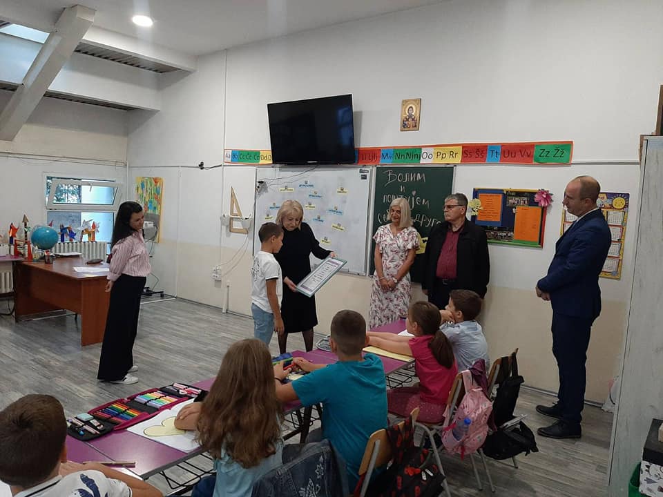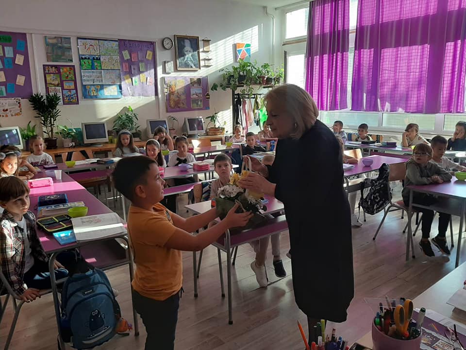 Дана 6. 9. 2023. имали смо част да министарка просвете Славица Ђукић Дејановић са својим сарадницима, др Миланом Пашићем, помоћником министра за основно образовање и др Зораном Костићем – посебним саветником министра, посети нашу школу и присуствује реализацији тематске наставе у одељењима I/2, III/3 и III/6. У овом тематском дану ђаци су обрађивали теме: „Моја школа је мој други дом“, „Чаробна моћ речи“ и „Волим и поштујем себе и друге“. Учитељице су показале своју креативност примењујући интердисциплинарни приступ наставе и учења, а деца су кроз игру развијала културу изражавања, емпатију, самосвесност, осећај припадности групи, усвајала правила понашања у школи, препознавала не само своју, већ и јединственост својих другара, истичући врлине код себе и других, говорећи са уважавањем и поштовањем, прихватајући различитости. Захваљујемо се министарки просвете и њеним сарадницима на посети са жељом да и убудуће наставимо овако лепу и успешну сарадњу!