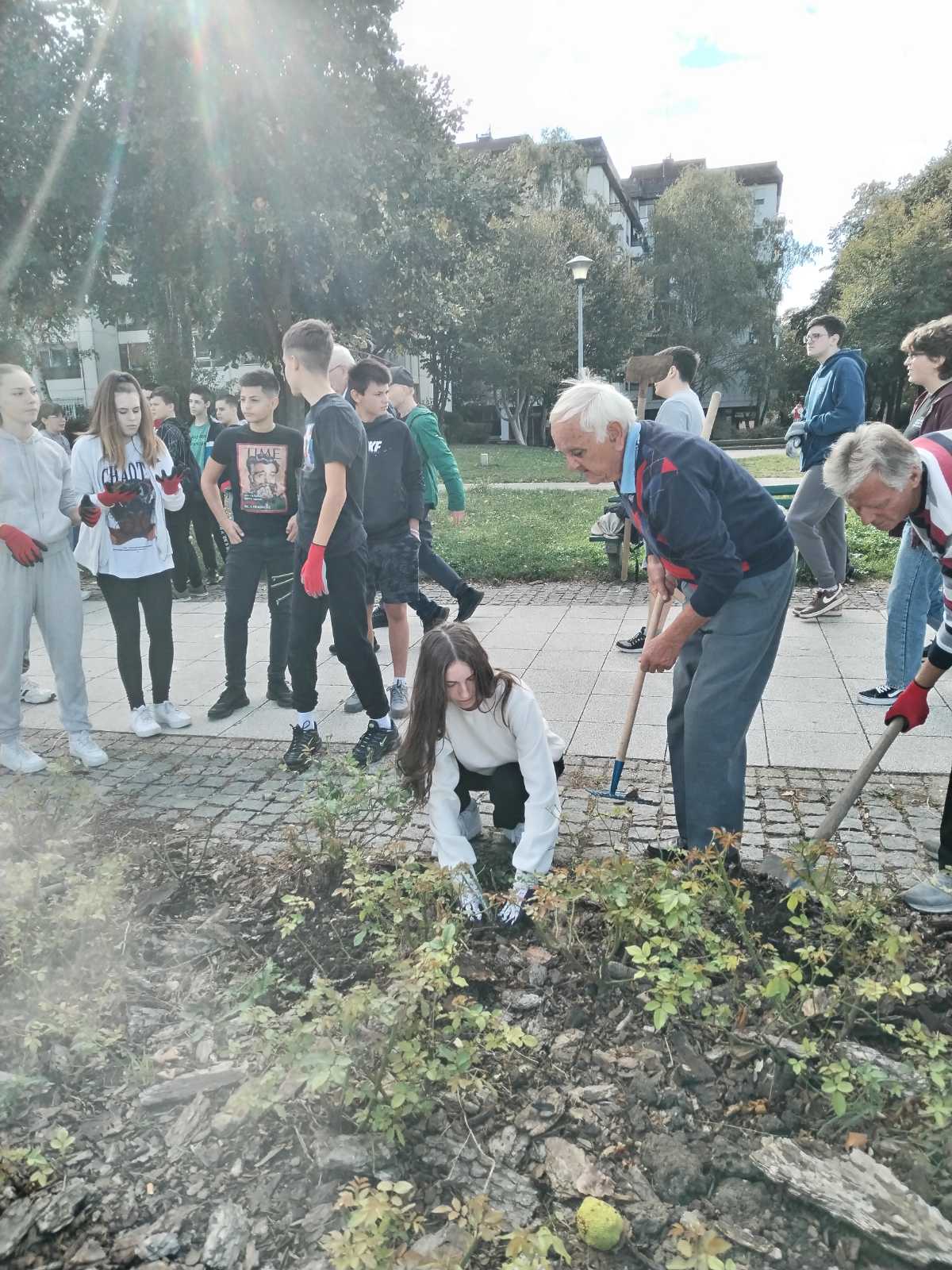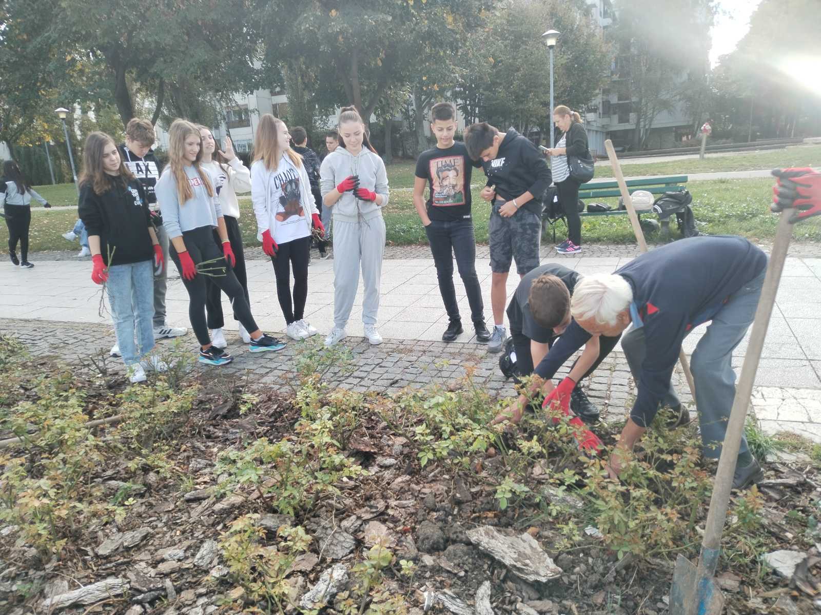 Ученице Тијана Никодиновић, Анђела Михајловић, Моника Мијовић, Тијана Леовац, Даница Допуђ из одељења 8/7 и ученици, Василије Савић, Матеја Стојановић, Стефан Милојевић и Марко Његомир, из одељења 8/1, засадили су по једну ружу, на Дунавском кеју, у част ослободилаца Београда, у Другом светском рату.